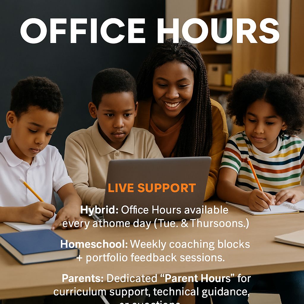 - Parents: Dedicated “Parent Hours” for curriculum support, technical guidance, or questions.