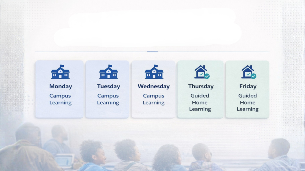 Our hybrid schedule blends structured campus learning with guided home learning to create balance, flexibility, and real-world readiness.